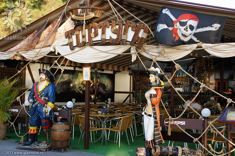 Кафе "Тортуга" располагается на центральной набережной рядом с городком аттракционов и Вечным огнём. Кафе привлекает посетителей необычным интерьером в стиле пиратского корабля. Кафе привлекает посетителей необычным оформлением в стиле пиратского корабля.