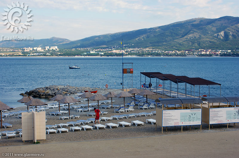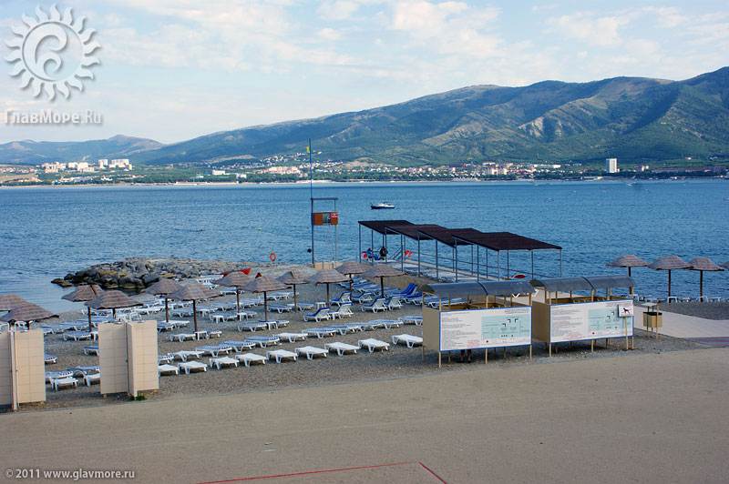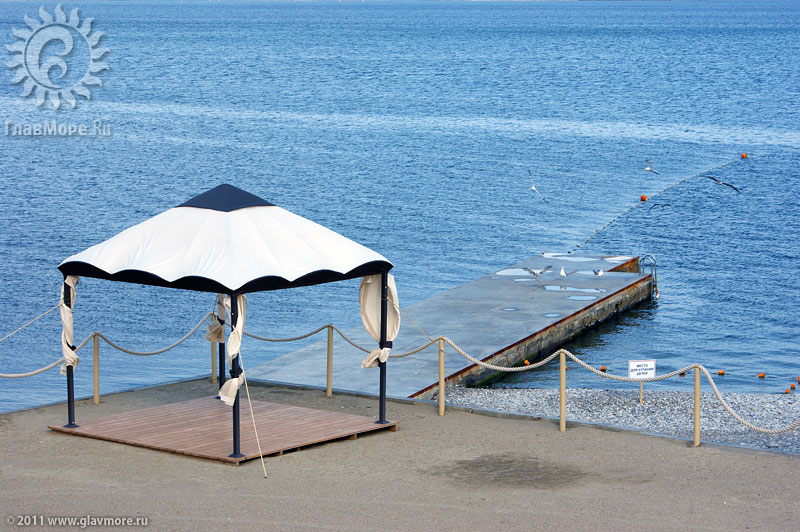 Небольшой галечный пляж Кемпински Гранд Отель Геленджик доступен для посещения только гостям отеля Кемпински. Вход по карточке гостя или по абонементу SPA Кемпински. Пляж плотно граничит с пляжем открытого посещения "Полярная звезда".