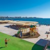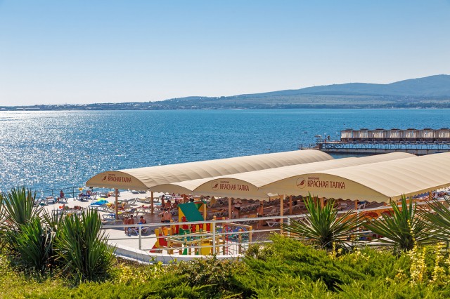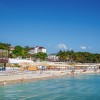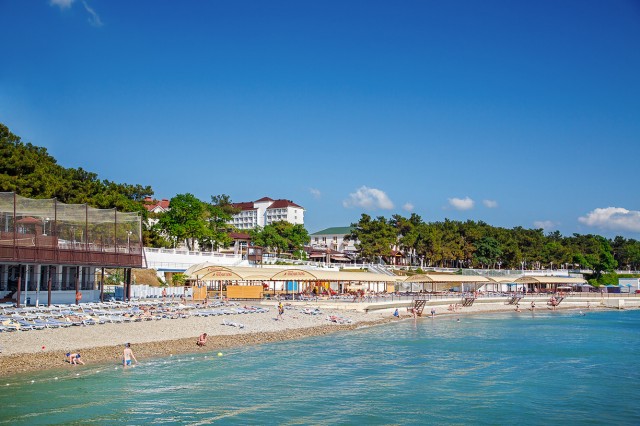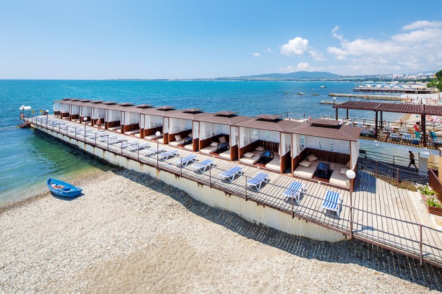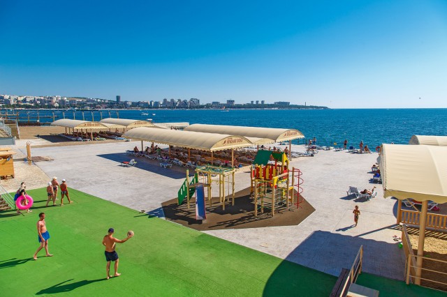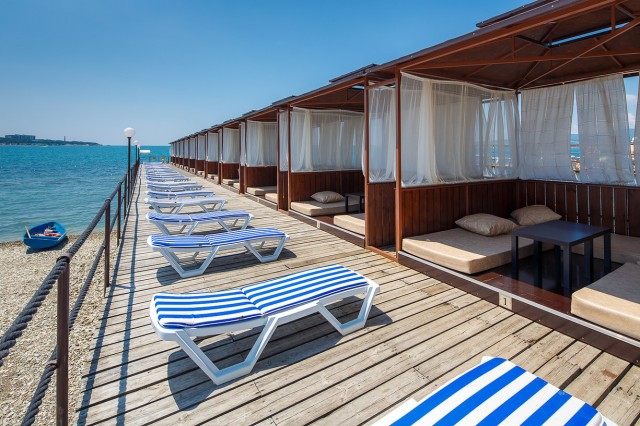 Галечный пляж, имеется специальная детская зона с песком. Шезлонги, зонты, отдельные бунгало, душевые кабинки. Взрослых и детей ждут развлекательные программы, игры на спортивных площадках.