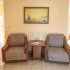 - Имеется просторная озеленённая веранда с обеденными столиками и зоной отдыха: шезлонги, кресла.