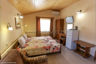 Имеются все удобства: уютные комнаты с TV, сплит-системами и вентиляторами, принадлежности для стирки, круглосуточное водоснабжение, просторная озеленённая веранда, укомплектованная кухня, бесплатный Wi-Fi и др.