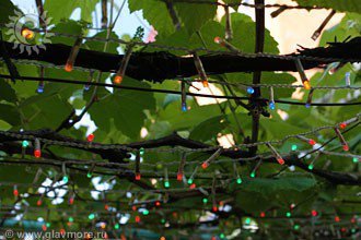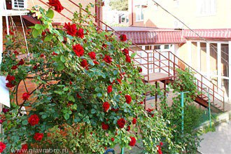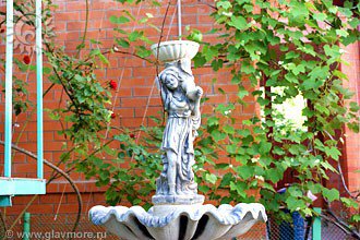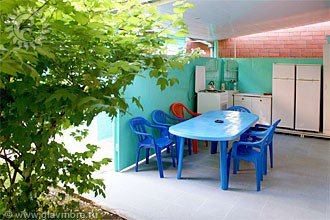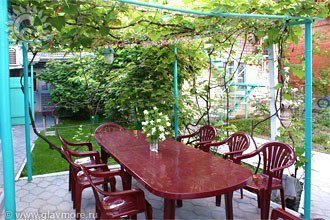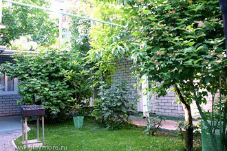 Просторный увитый виноградом зелёный дворик украшен цветочными клумбами, экзотическими растениями, фонтанчиком и вечерней иллюминацией. Имеется мангал для приготовления шашлыка.