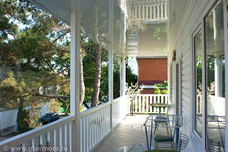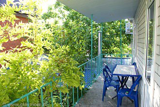 В номерах стандарт: сплит-система, телевизор, столик с зеркалом, шкаф для одежды. Санузел в номере. Горячая, холодная вода круглосуточно. Оборудованная кухня-столовая на этаже на 2 номера: холодильник, газовая плита, микроволновая печь, обеденный стол. На втором этаже зелёная веранда с местами для отдыха.