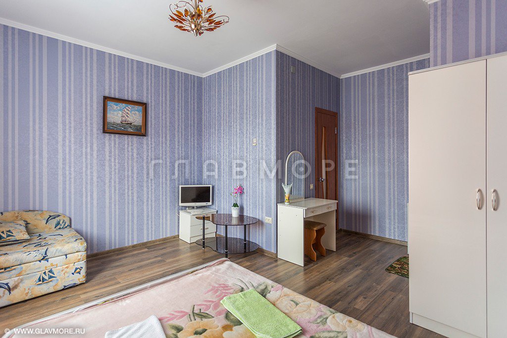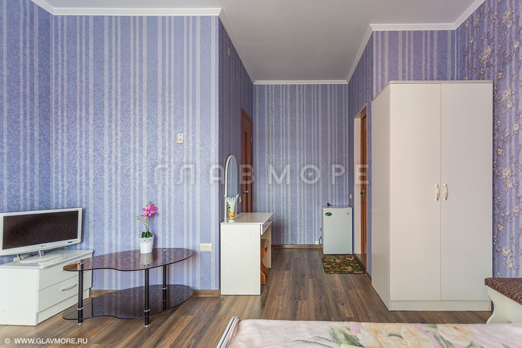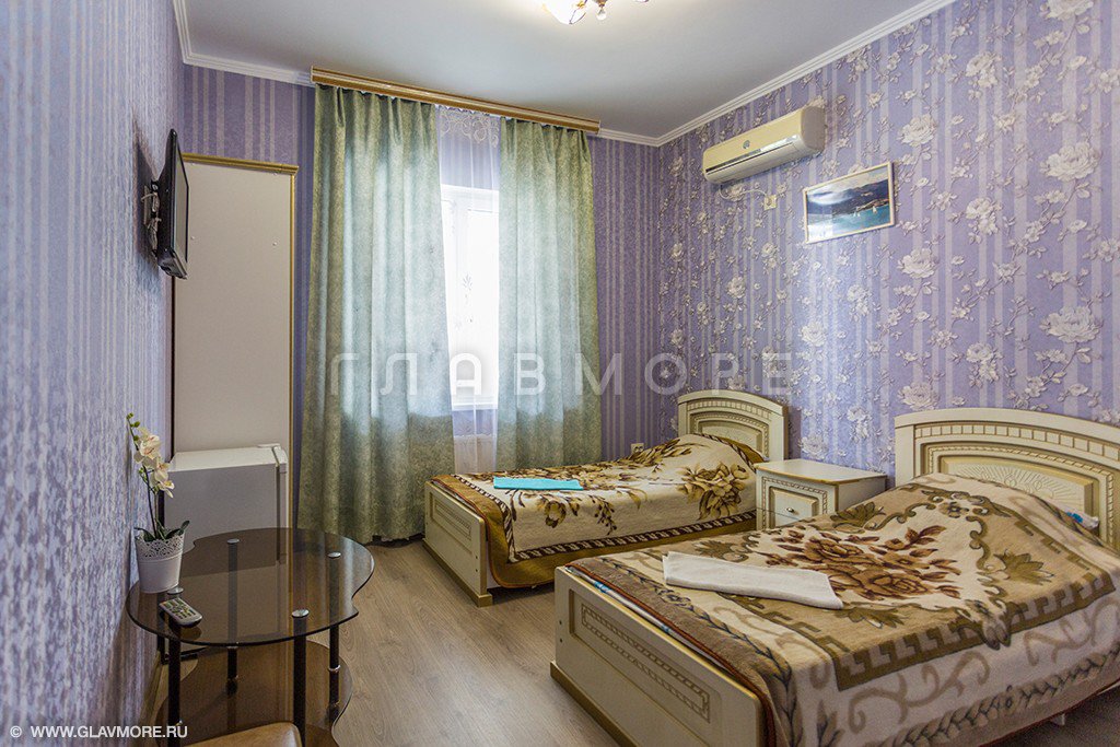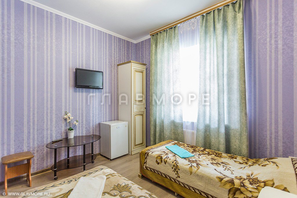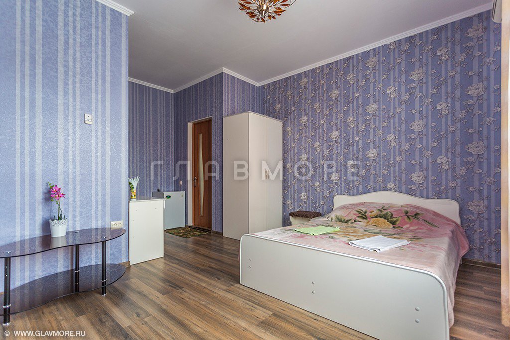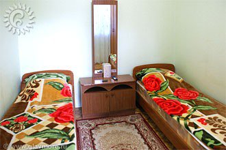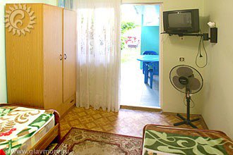В номерах эконом: односпальные и полуторные кровати, вентилятор, телевизор, трюмо, шкаф для одежды. Туалет, душ во дворе на 3 номера. Горячая, холодная вода круглосуточно. Летняя оборудованная кухня-столовая: 2 холодильника, газовая плита, разделочный и обеденный стол.