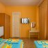 Номер эконом + двух и трехместные: односпальные кровати, сплит-система, телевизор, шкаф для одежды, зеркало, прикроватная тумбочка. Туалет, душ, раковина во дворе. Столик перед входом на балконе.